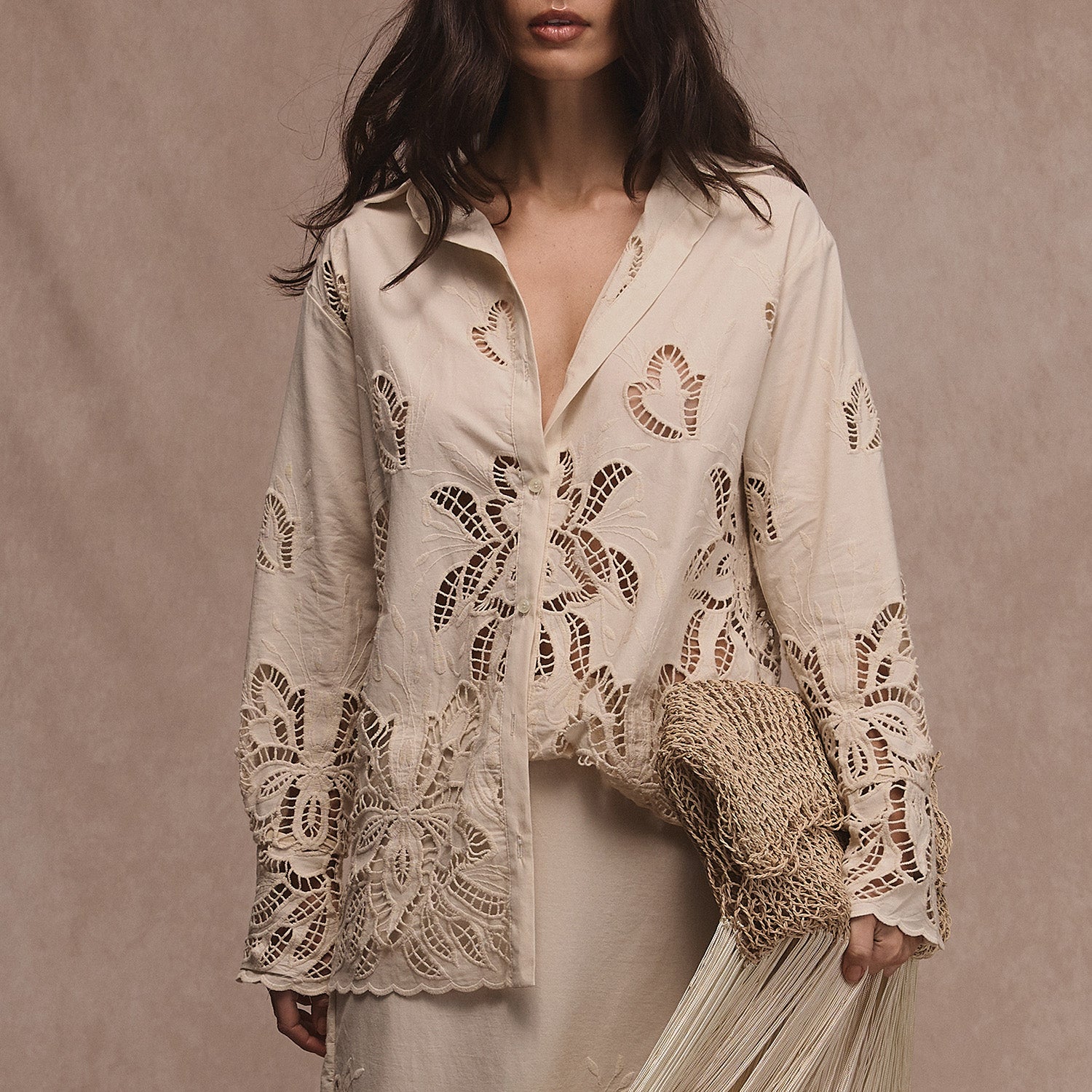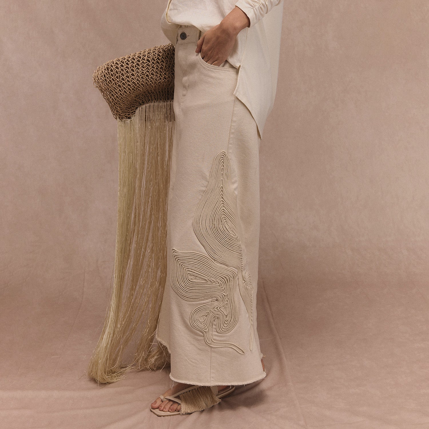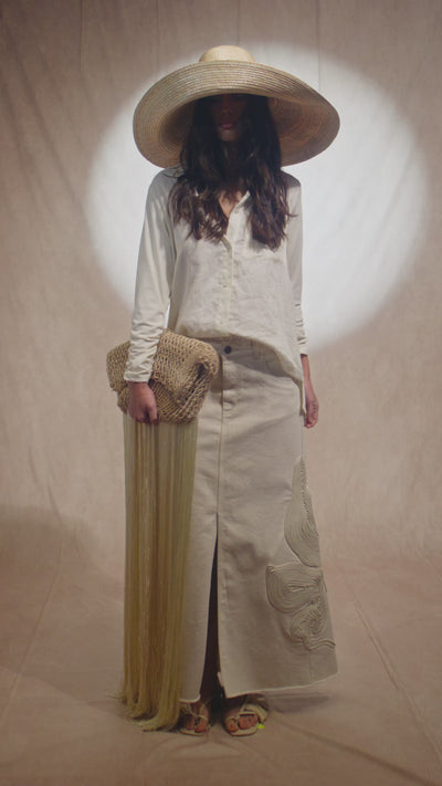 Falda arena blanca orgánico con bordado
